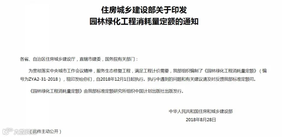 《园林绿化工程消耗量定额》(编号为ZYA2-31-2018)