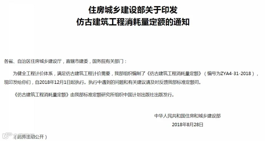 《仿古建筑工程消耗量定额》(编号为ZYA4-31-2018)