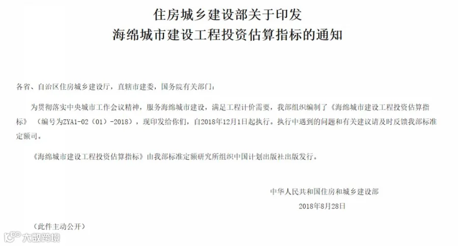 《海绵城市建设工程投资估算指标》 (编号为ZYA1-02(01)-2018)
