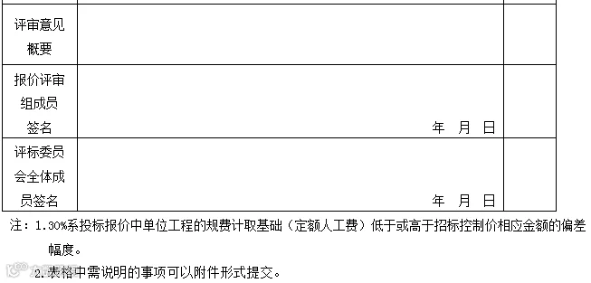 5、对投标人投标报价中单位工程的规费计取基础(定额人工费)低于或高于招标控制价相应金额30%的,报价评审组经评审认为其不存在擅自改变规费计费基础计取规费情形的,应当书面说明理由,报价评审组成员应当签字并承担相应法律责任。