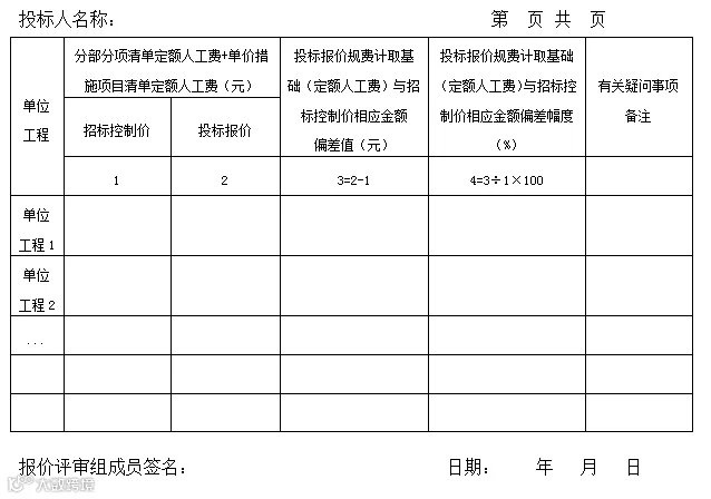 对按本款第1项规定评审通过的投标人投标报价中的规费计取基础(定额人工费)评审,投标报价中单位工程的定额人工费低于或高于招标控制价相应金额30%的,报价评审组应对其投标报价中规费计取基础的合规性、合理性进行分析,并可根据分析情况和评审需要向投标人提出询问。