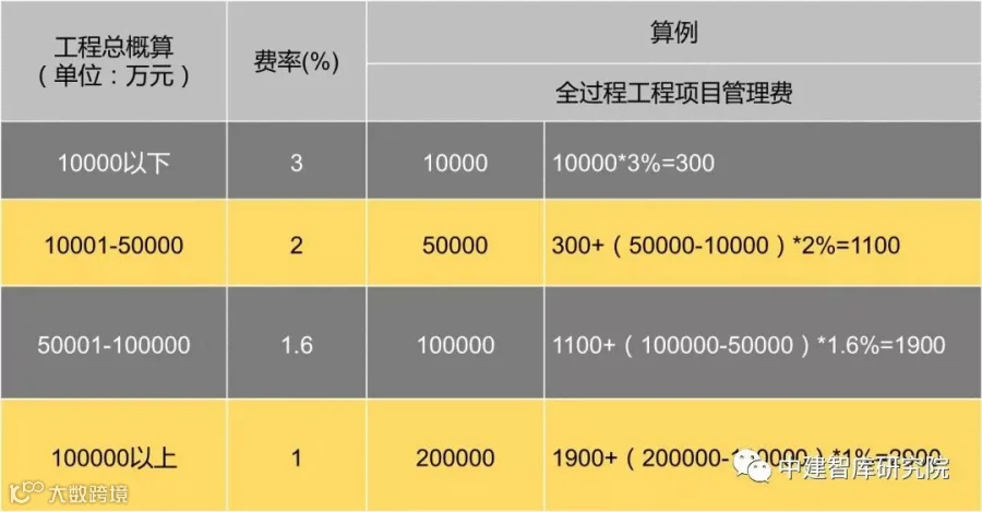 备注:计算例中括号内第一个数为工程总概算分档的变动数,即某项目工程总概算为X,若10001X50000,则全过程工程咨询服务协调费为300+(X-10000)*2%,依次类推。