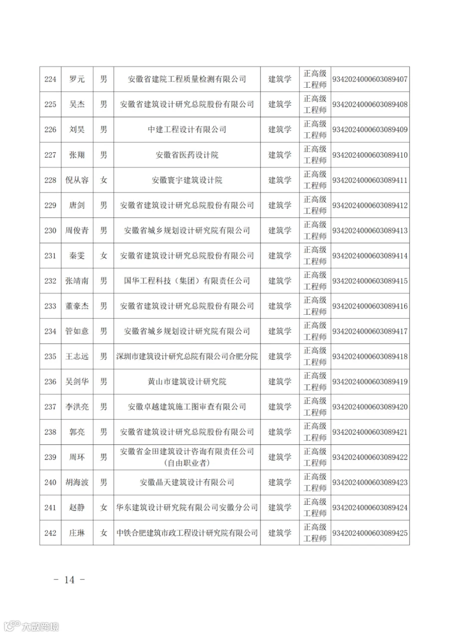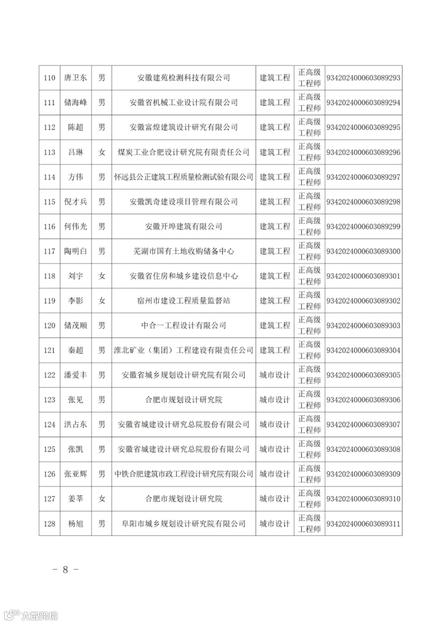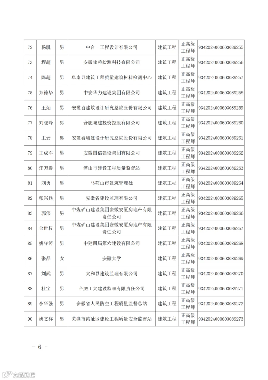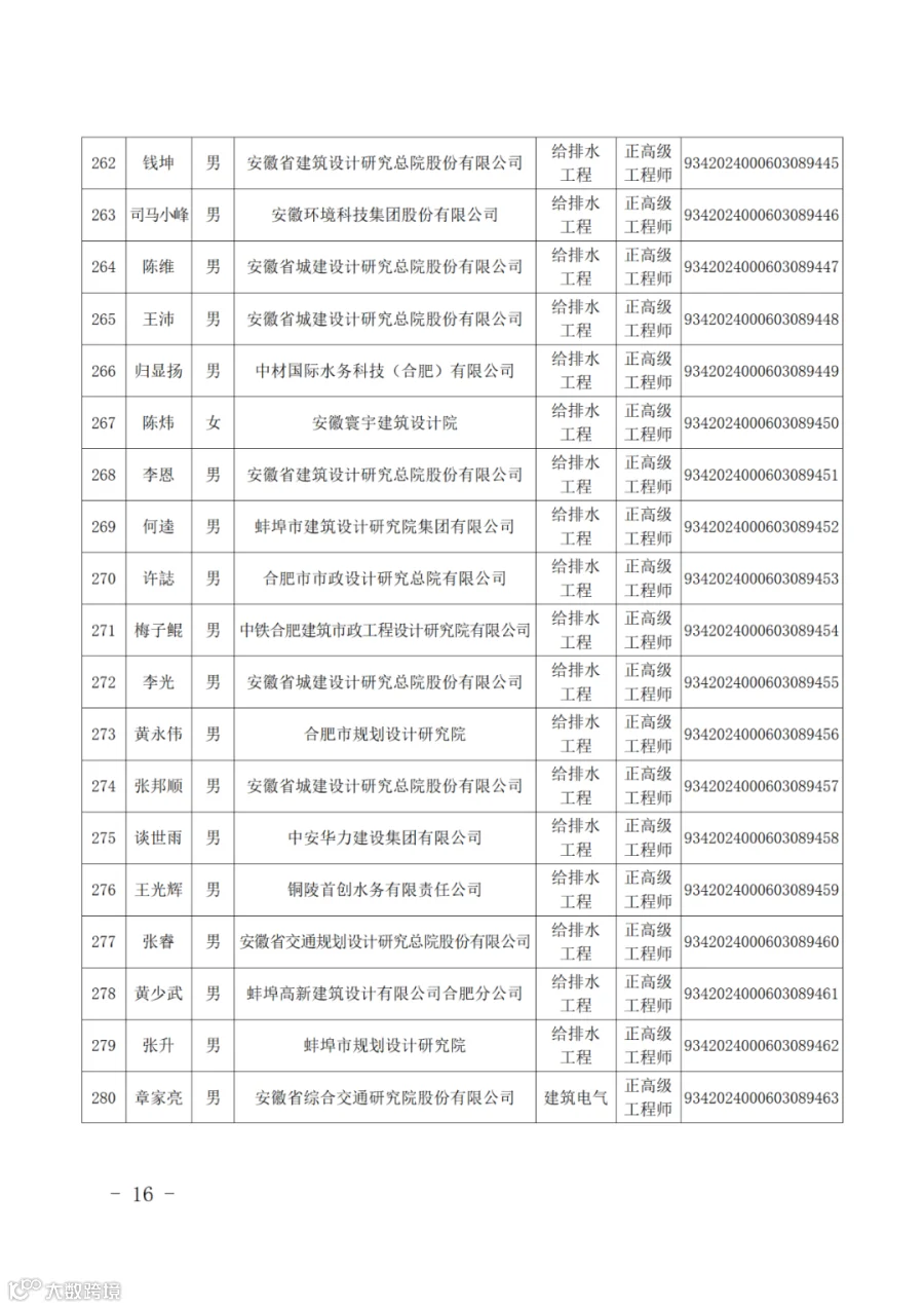 附件:2024年度取得安徽省建设工程专业正高级工程师专业技术资格人员名单