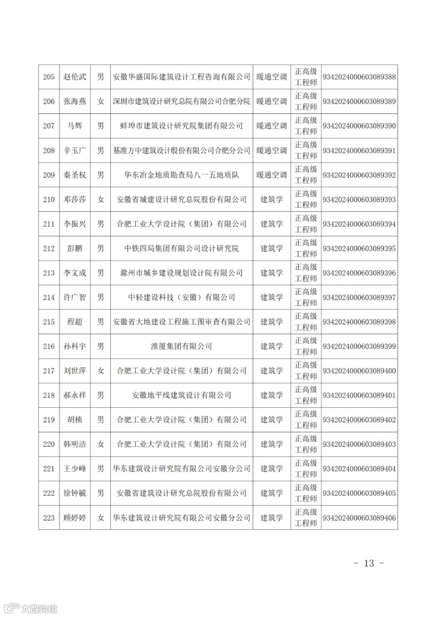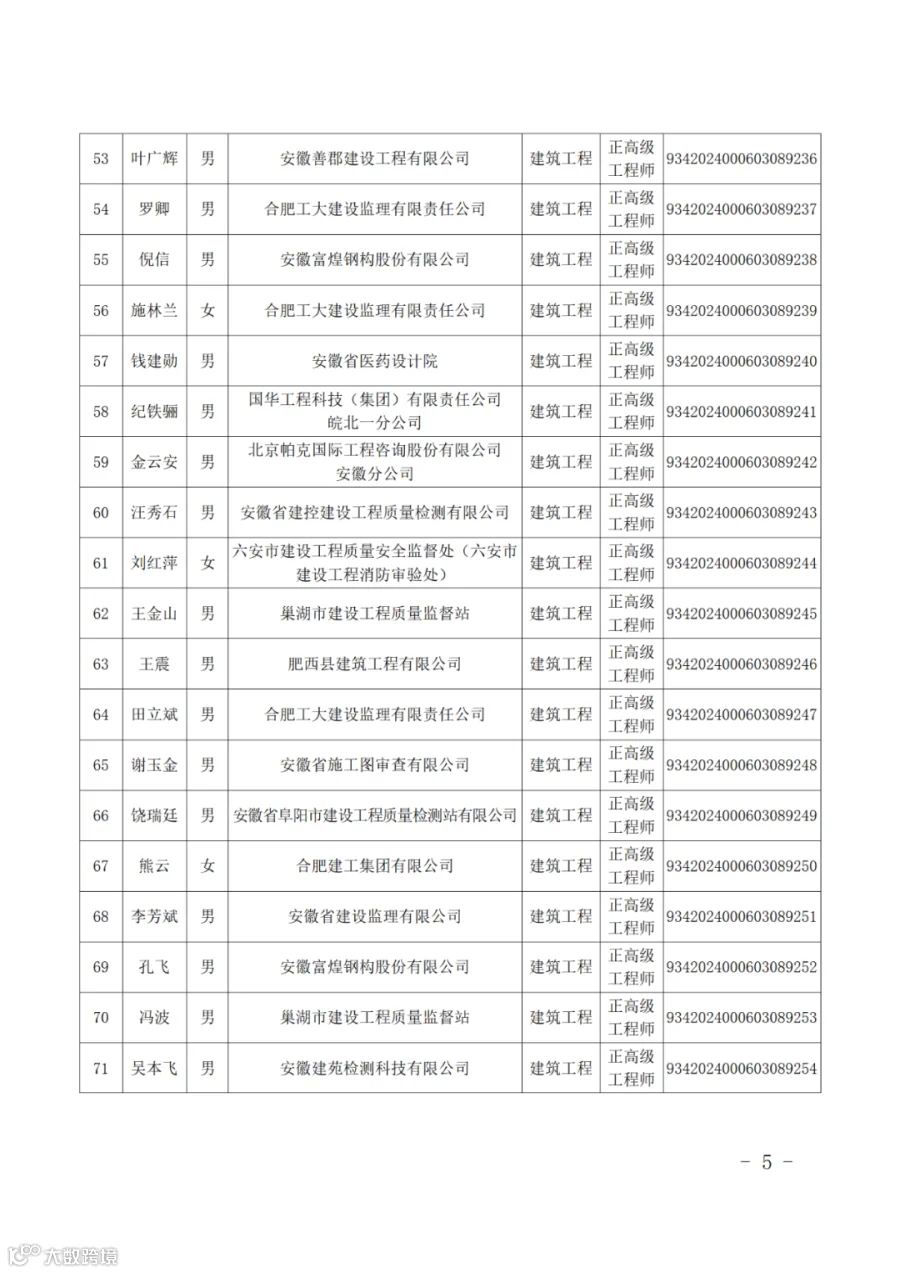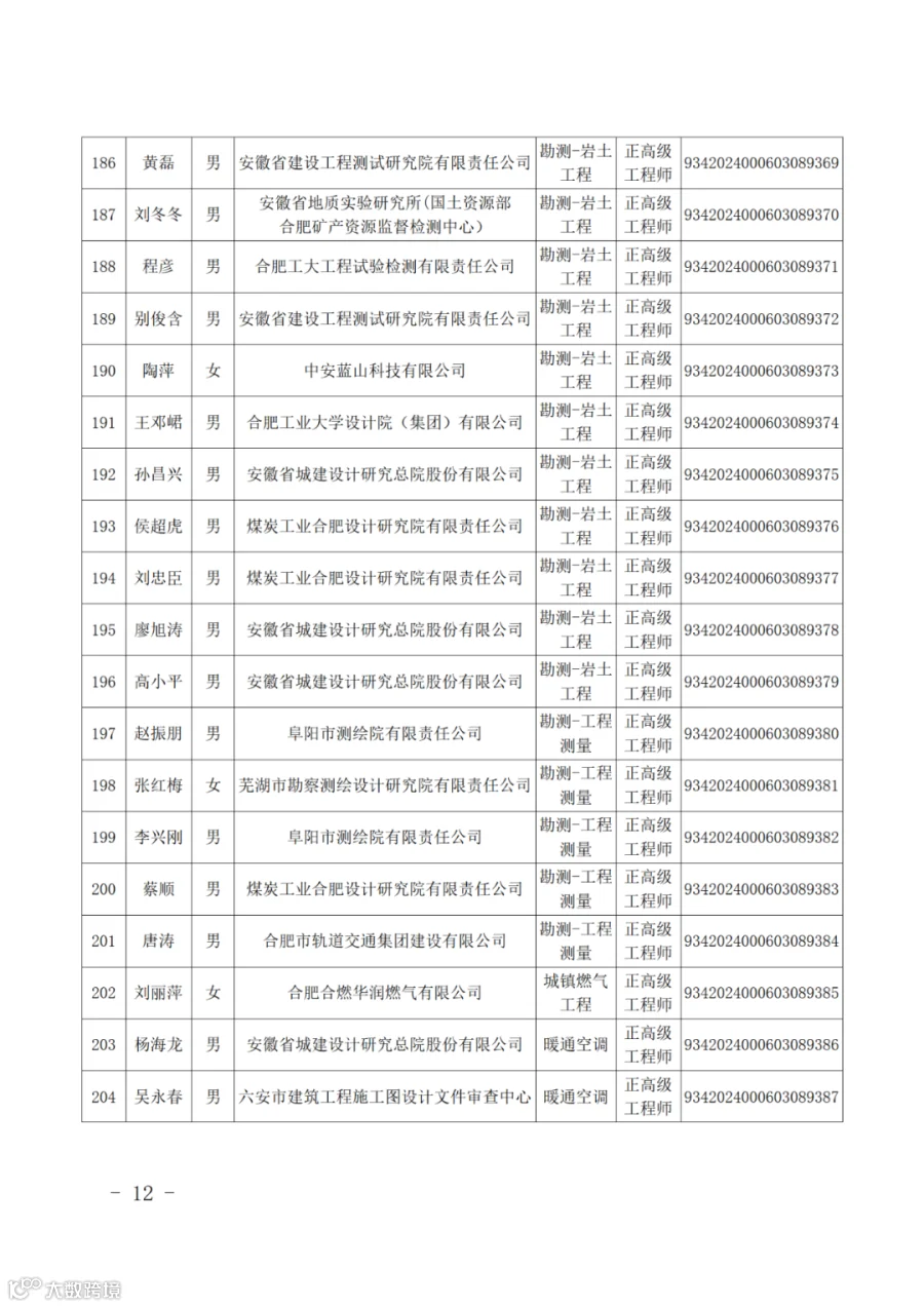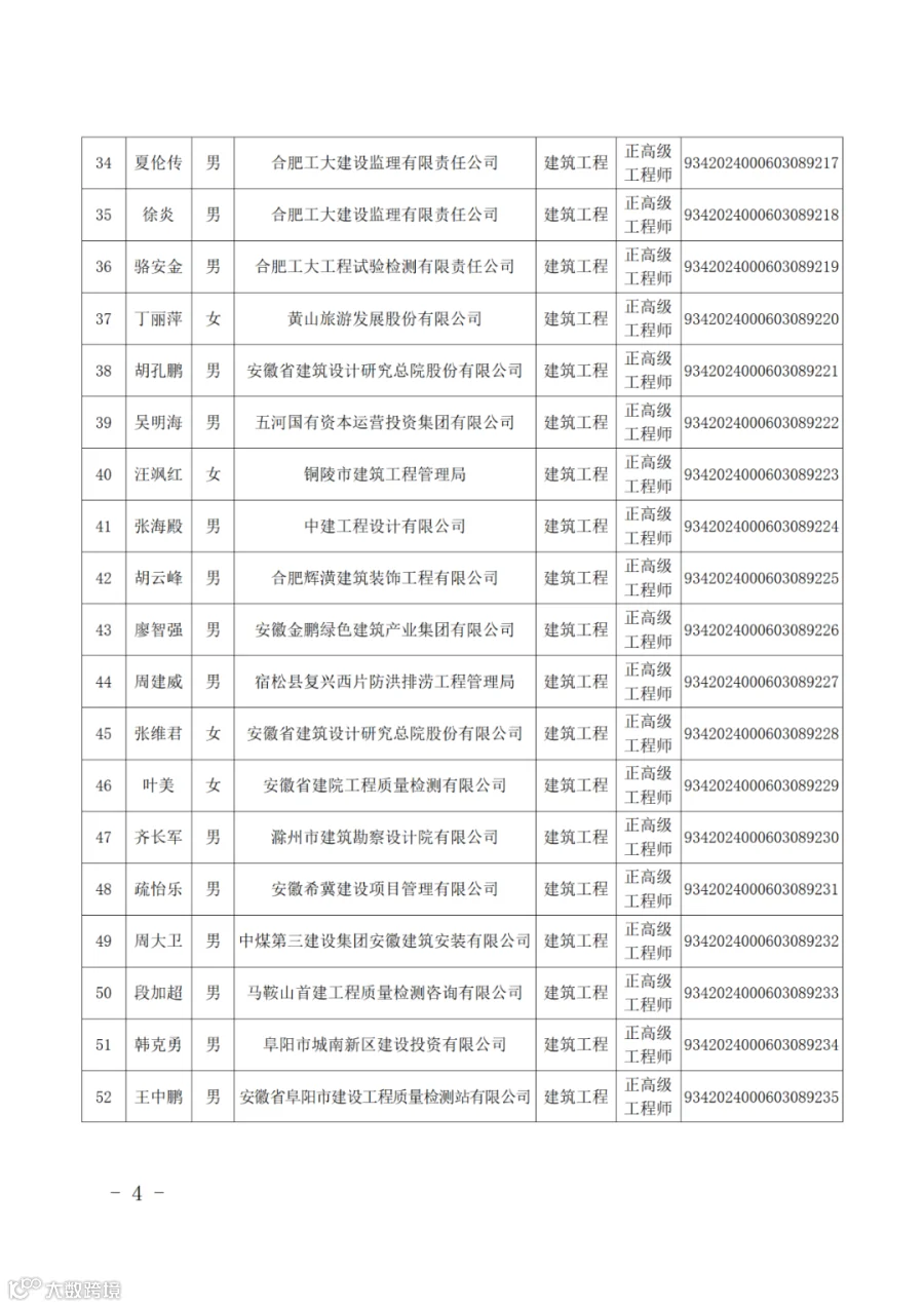 附件:2024年度取得安徽省建设工程专业正高级工程师专业技术资格人员名单