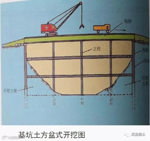 图解说明:盆式土方开挖应符合下列要求