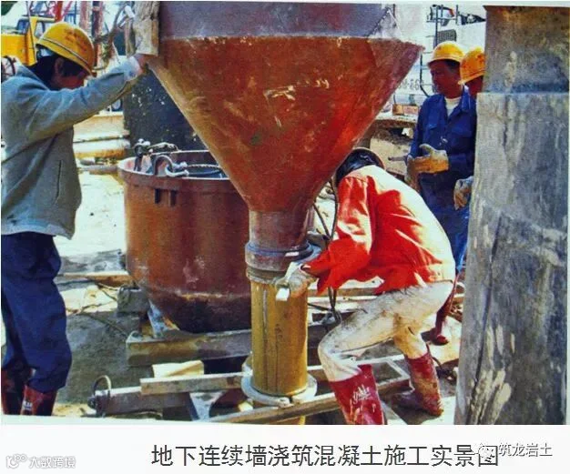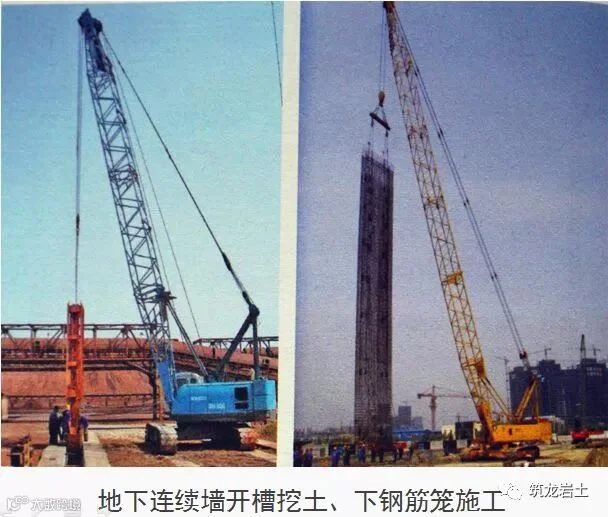 说明:分槽段专用机械成槽、下钢筋笼、浇筑混凝土所形成的连续地下墙体,也可称为现浇地下连续墙。