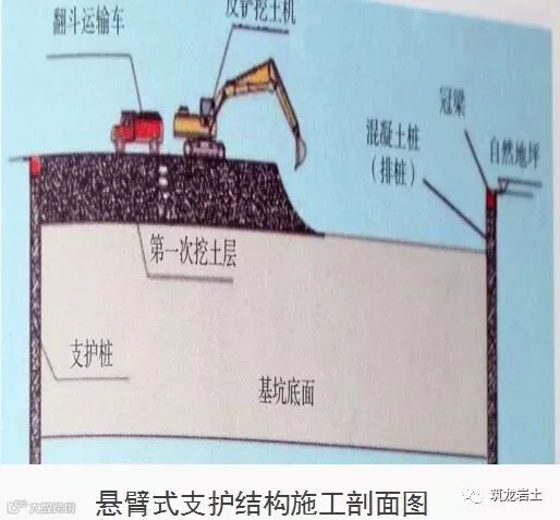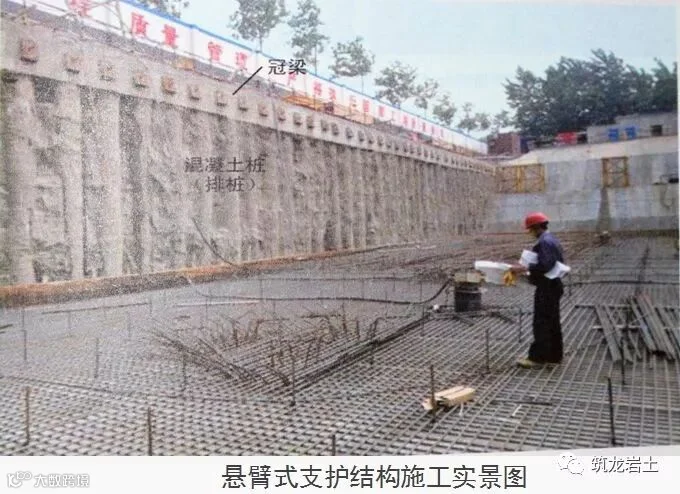 说明:以顶端自由的挡土构件为主要构件的支挡式结构,适合于浅基坑。