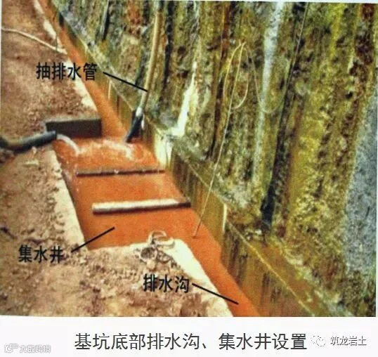 检点要点:基坑底四周应按专项施工方案设排水沟和集水井,并应及时排除积水。
