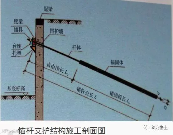 说明:由杆体(钢绞线、普通钢筋、热处理钢筋或钢管)、注浆形成的固结体、锚具、套管、连接器所组成的一端与支护结构构件连接,另一端锚固在稳定岩土体内的受拉杆件。杆体采用钢绞线时,也可称为锚索。
