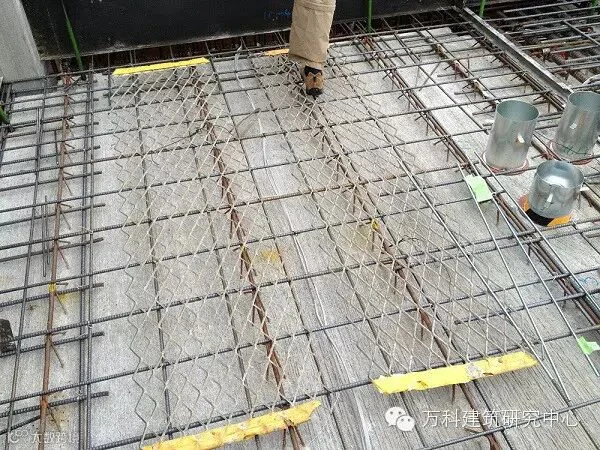 ▲现场设置“马道”,特殊通道铺设在板筋上,减少对钢筋踩踏,不仅避免面筋变形,也可以减少对底部保护层的影响