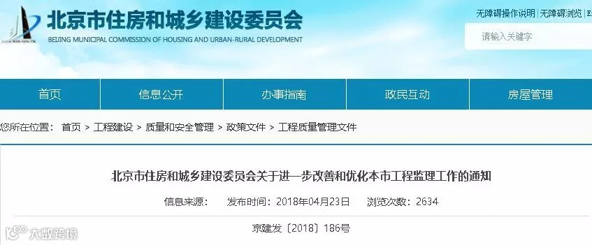 2018年4月23日,北京市住房和城乡建设委员会印发《关于进一步改善和优化本市工程监理工作的通知》(京建发〔2018〕186号)提出,三类项目可不实行工程建设监理: