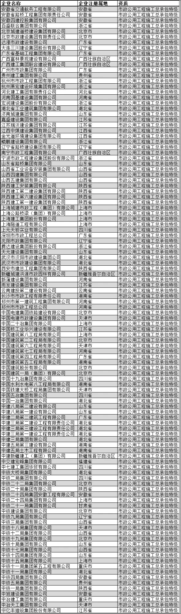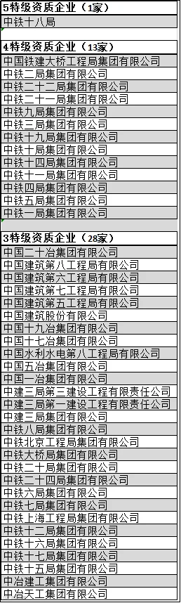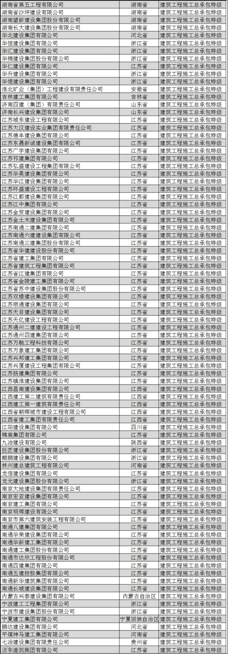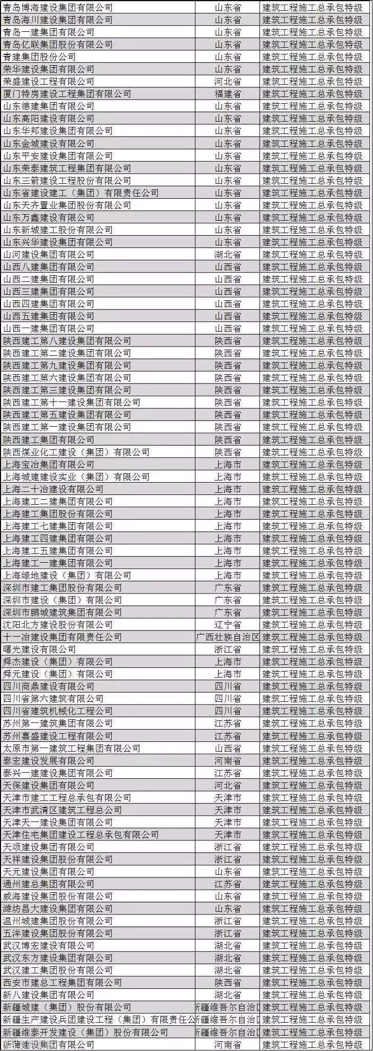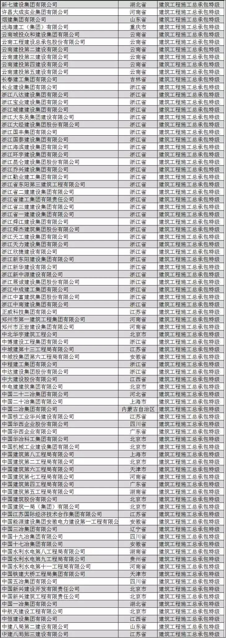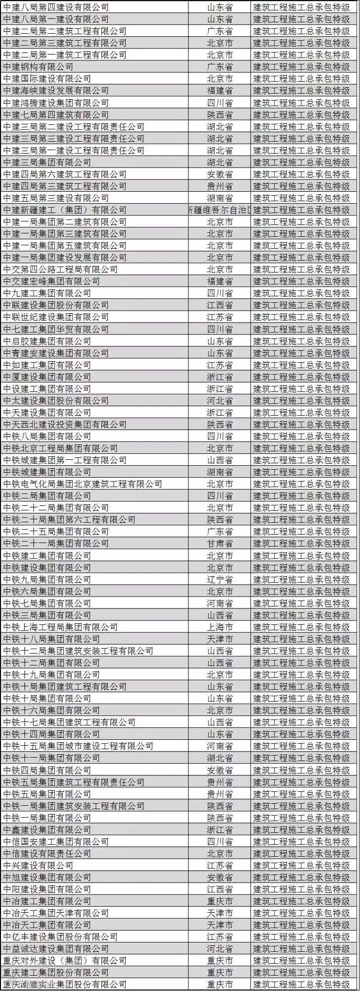 全国建筑企业特级资质名单