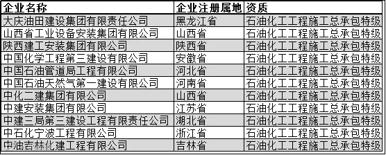 石油化工工程施工总承包特级