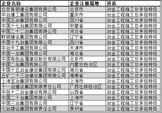 冶金工程施工总承包特级