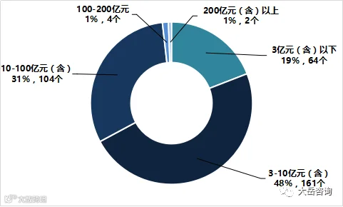 项目规模上,本期入库项目中,3-10亿的项目数量最多,同时有2个超200亿的特大型项目;本期出库项目中,3亿以下的小体量项目最多,接近6成比例,无200亿以上的项目出库。