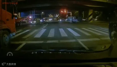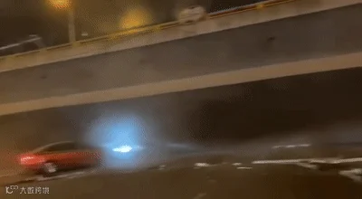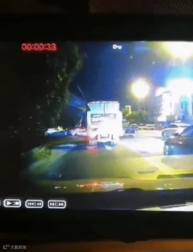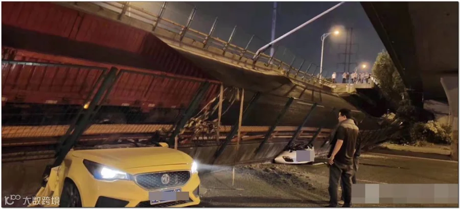 事故现场附近一车辆的行车记录仪拍到了高架桥倒塌的惊险瞬间。