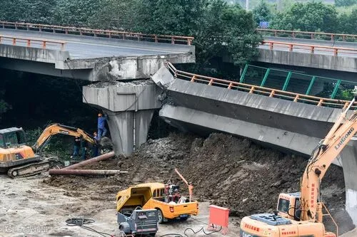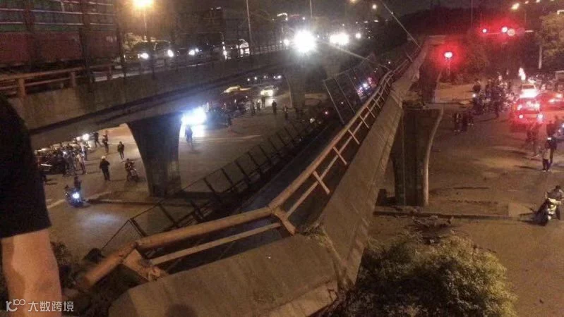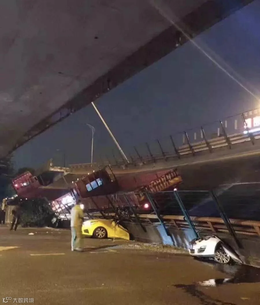 事故发生后,跨桥的设计、施工问题,引发网友的质疑。
