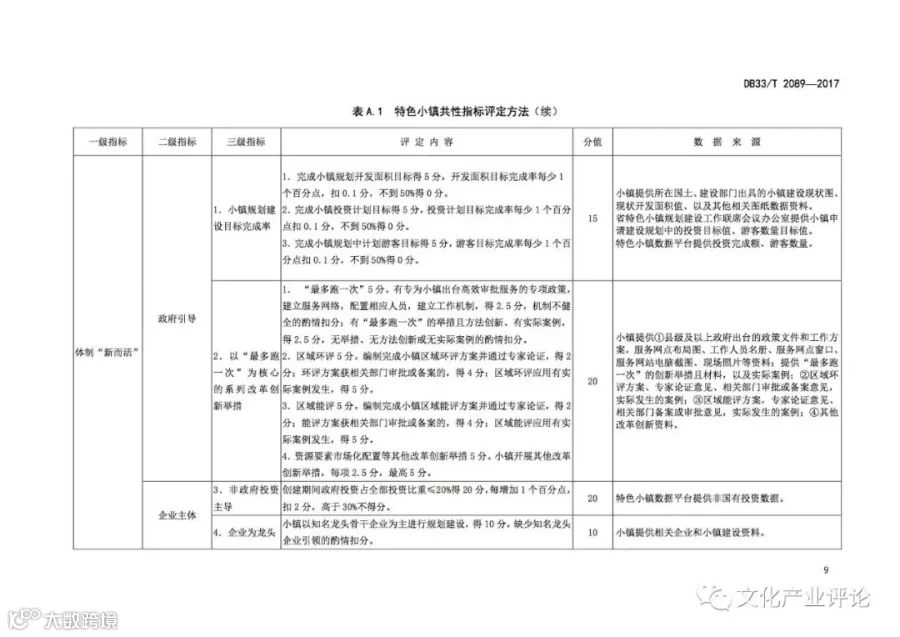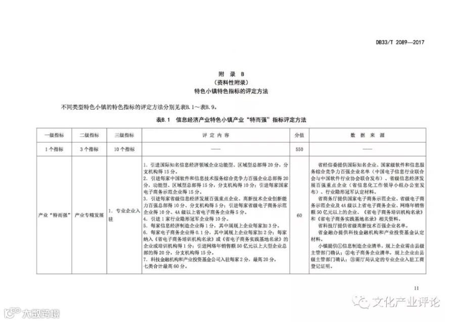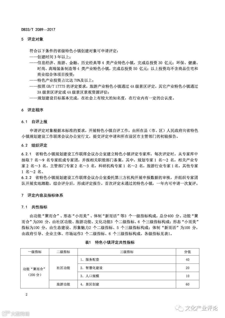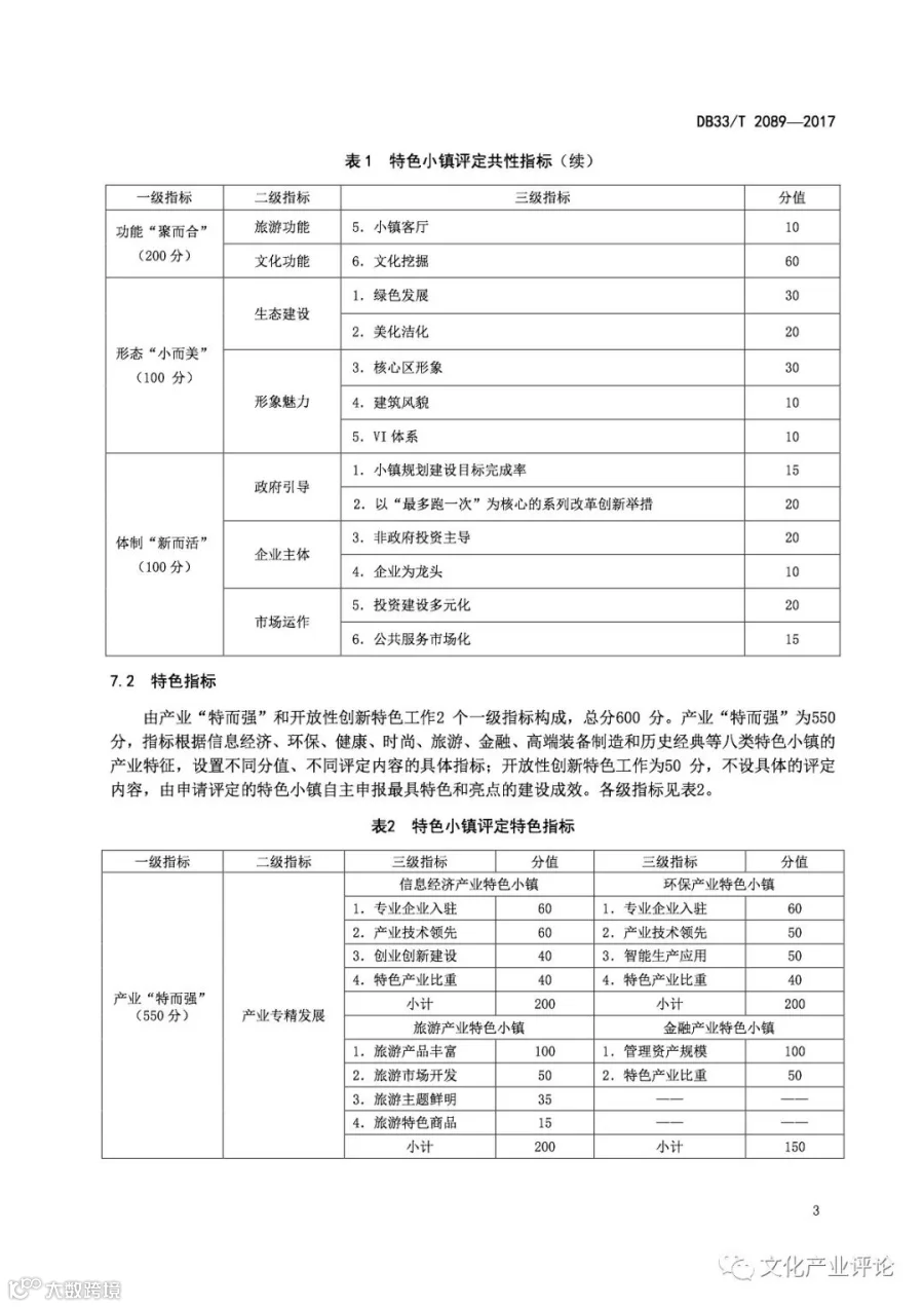 近日,浙江省质监局发布了我国首个“特色小镇”评定地方标准,该标准将于2018年1月29日正式实施。《规范》中,特色小镇的评定内容及指标体系主要分为“共性指标”与“特色指标”两个关键部分。其中,共性指标由功能“聚而合”、形态“小而美”、体制“新而活”三个一级指标来构成,总分为400分。特色指标则由产业“特而强”和开放性创新特色工作两个一级指标来构成,总分600分。