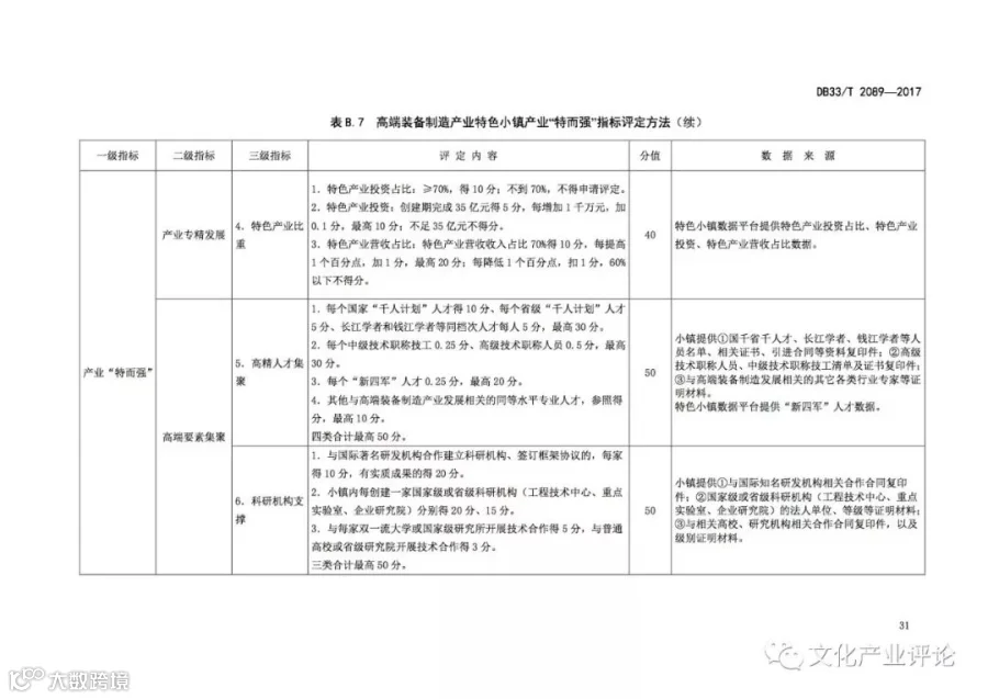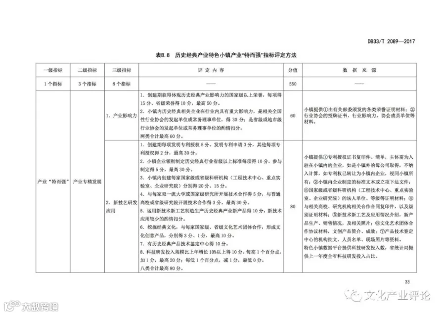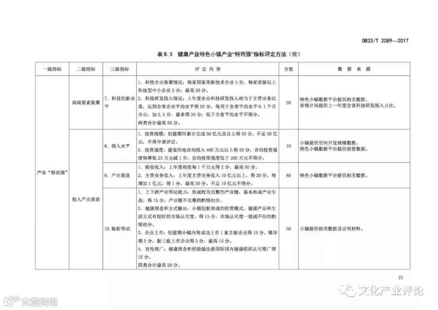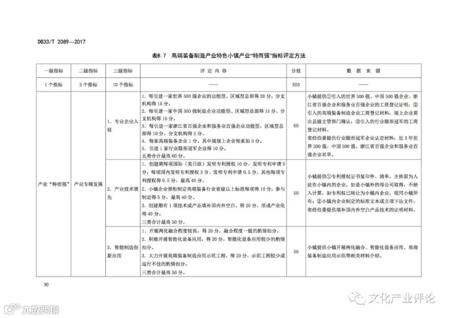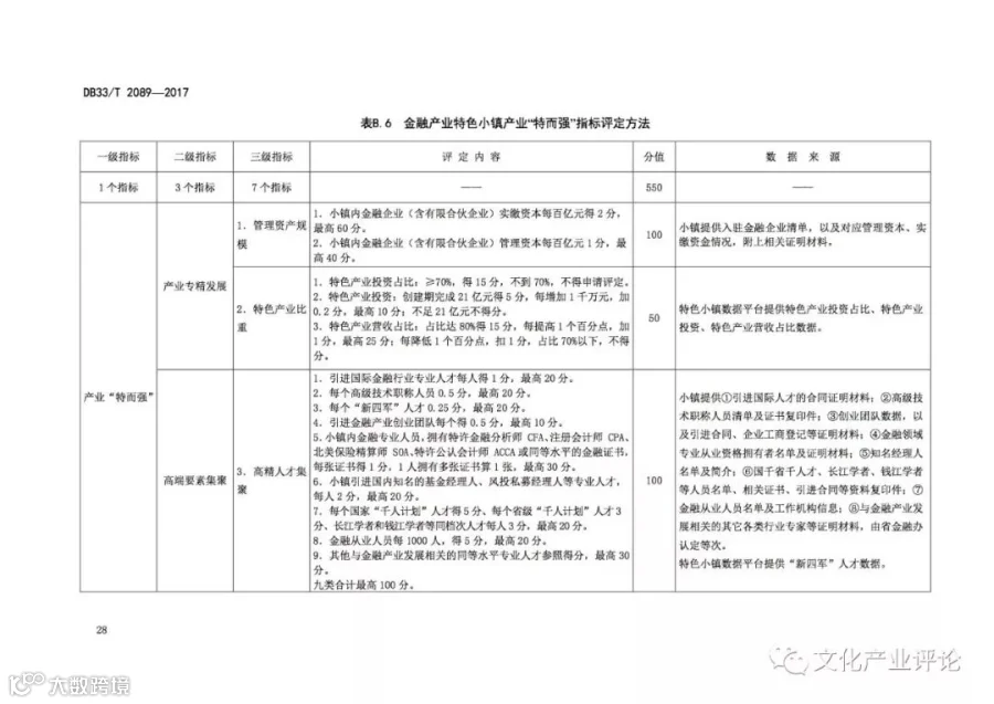 近日,浙江省质监局发布了我国首个“特色小镇”评定地方标准,该标准将于2018年1月29日正式实施。《规范》中,特色小镇的评定内容及指标体系主要分为“共性指标”与“特色指标”两个关键部分。其中,共性指标由功能“聚而合”、形态“小而美”、体制“新而活”三个一级指标来构成,总分为400分。特色指标则由产业“特而强”和开放性创新特色工作两个一级指标来构成,总分600分。