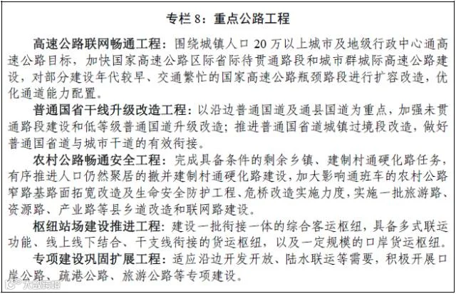 实施高速公路联网畅通、普通国省干线升级改造、农村公路畅通安全、枢纽站场建设推进和专项建设巩固扩展五大工程。