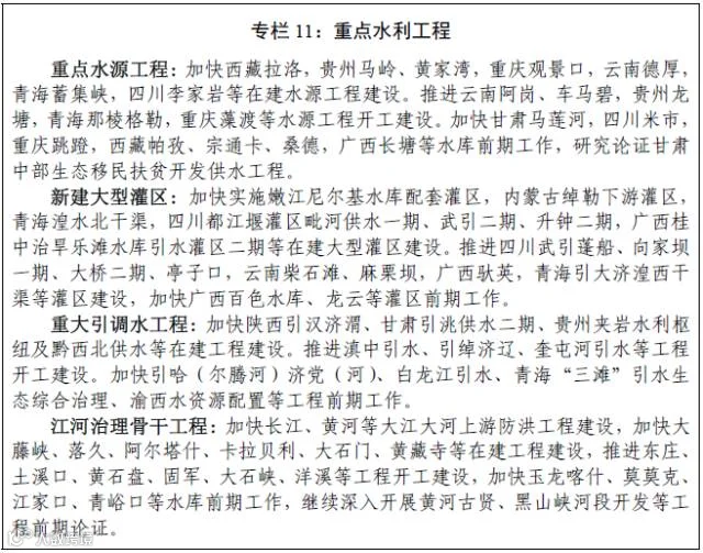 建设一批重大引调水工程、重点水源工程、江河湖泊骨干治理工程和大型灌区工程。