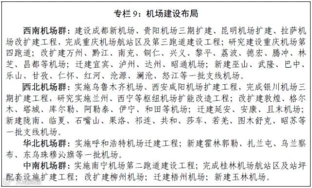 加强西部地区枢纽机场扩容改造,建设成都新机场,建成重庆机场三期改扩建工程。