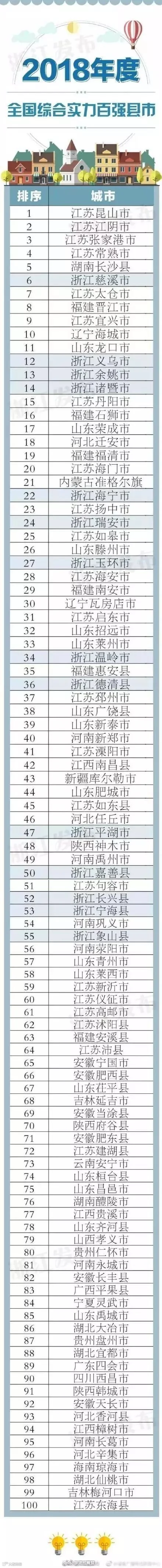 10月8日,2018年中国中小城市科学发展指数研究成果发布。研究成果包括了2018年度全国综合实力百强县市、百强区等名单。从榜单编制机构发布在《人民日报》上的榜单看到,在百强县的前十名中,江苏省占据6席,且独揽前四名。江苏昆山市又不出意料地夺得榜首,至今,它已连续14年卫冕该榜首。