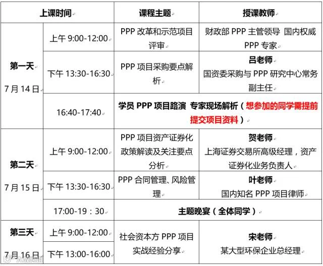PPP全流程税务规划、PPP项目税务风险及成本管控,资产证券化要点解析、PPP项目融资,社会资本方项目实践分享。