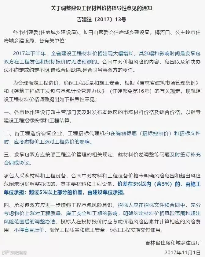 2018年7月27日,河南省建筑工程标准定额站印发《关于加强建筑材料价格风险控制的通知》,提出: