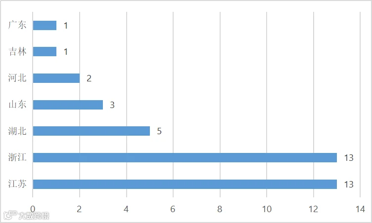由上图可得,入围的38家民营建企有近70%来自于江苏与浙江, 两建筑强省充分展现实力。