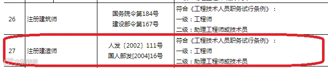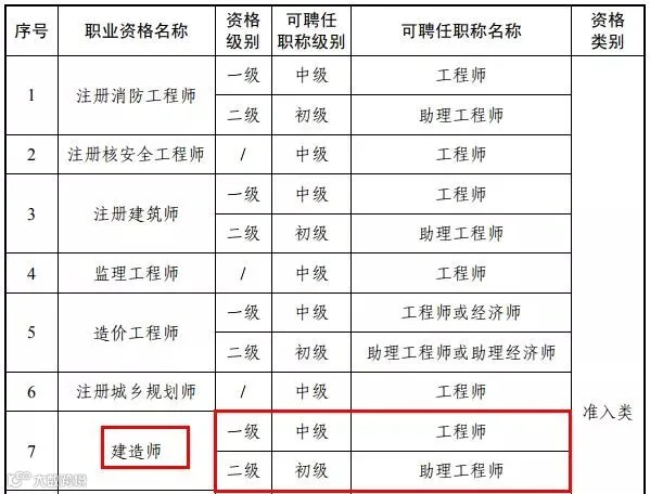 通过全国统一考试,取得注册消防工程师、注册核安全工程师、房地产估价师、造价工程师、注册建筑师、建造师、勘察设计注册工程师等13项准入类职业资格证书的专业技术人员,其职业资格直接对应相应系列和层级的职称,两者享有同等效力。