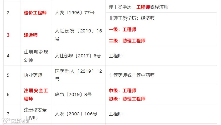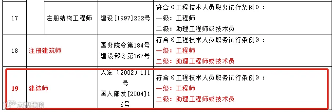 2019年4月,陕西省人社厅公布《关于明确部分职业资格与职称对应关系的通知》: