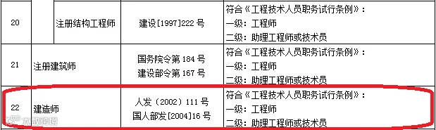 涉及工程建设领域职业资格共21项,建造师、建筑师、造价工程师等都在其列,专业技术人员职业资格16项,技能人员职业资格5项。