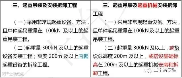 (二)起重量300kN及以上,或搭设总高度200m及以上,或搭设基础标高在200m及以上的起重机械安装和拆卸工程。