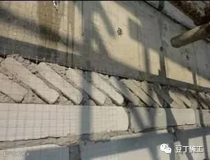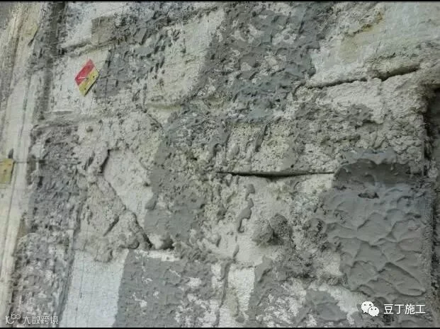 14、外墙构造柱未一次性浇筑密实,产生裂缝,易出现渗漏隐患。
