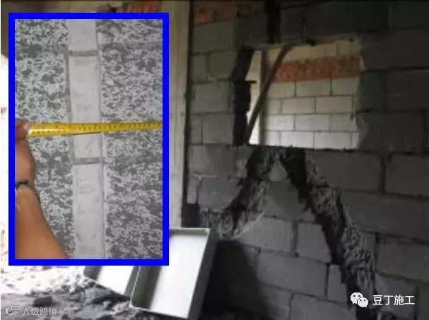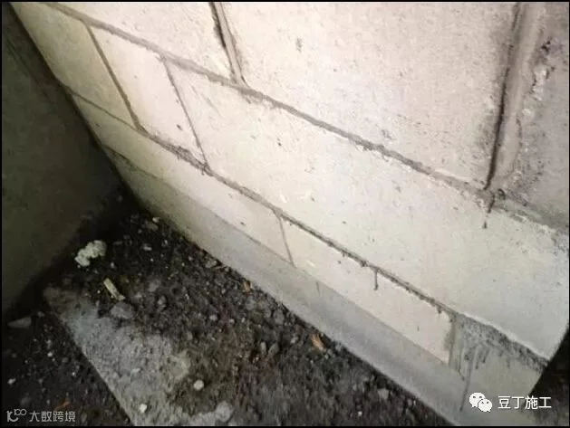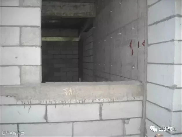 2、窗框两侧未设置砼预制块或实心砖,后期窗框安装时只能固定在砌块上,后期抹灰完成后,窗框周边易产生裂缝。