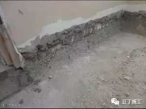 标准做法:厨卫间反坎浇筑前,新旧混凝土接触面必须凿毛、清理。