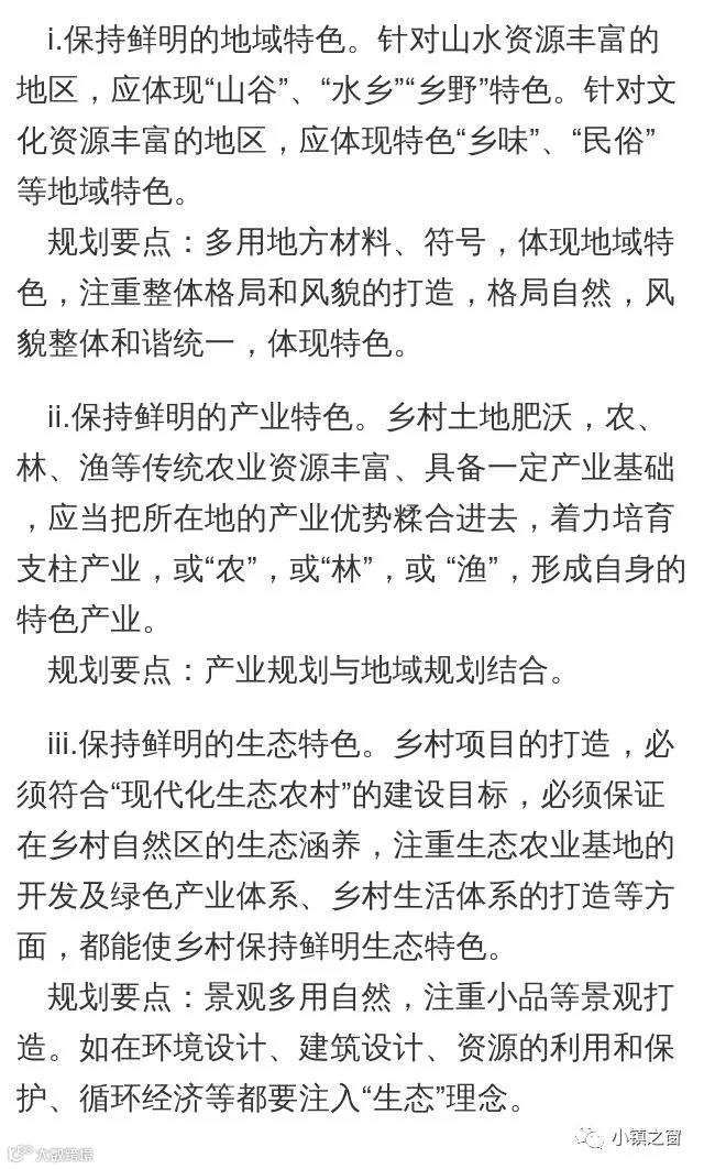 a)特色鲜明:保持地域、产业、生态、风貌特色