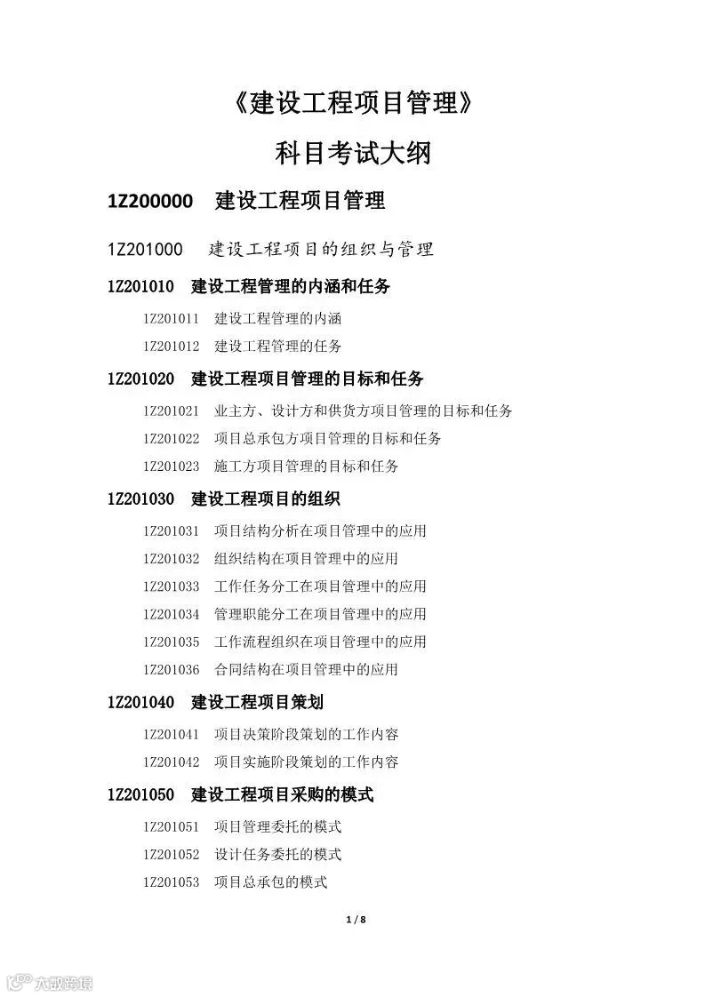 附:《建设工程项目管理》科目考试大纲