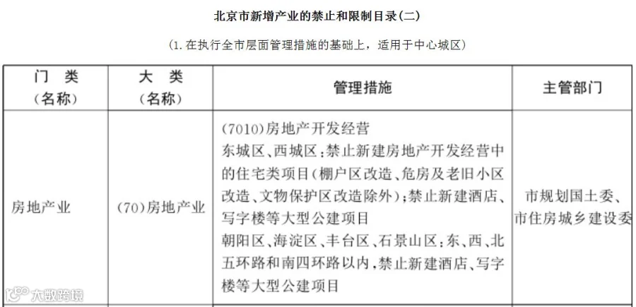 1、北京东、西城区相当于南京的鼓楼玄武,杭州的上、下城区一样,是老城区。本来就没什么新房供应,这不是产业新目录的重点;