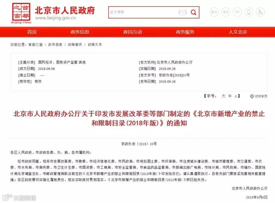 今天(9月26日)上午,北京传来一个大消息:市政府公布《北京市新增产业的禁止和限制目录》(2018年版),其中对房地产有诸多新规定。