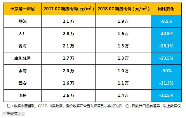 根据7月最新数据统计,环京第一圈层的房价,已经确确实实地“暴跌”了。