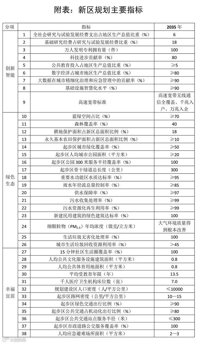 附表:新区规划主要指标