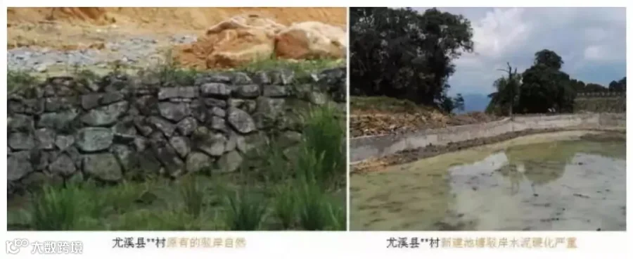在检查验收过程中,发现部分村庄依然存在推山削坡、填塘以及溪流、沟渠等驳岸硬化过度等破坏乡村风貌和自然生态的行为。