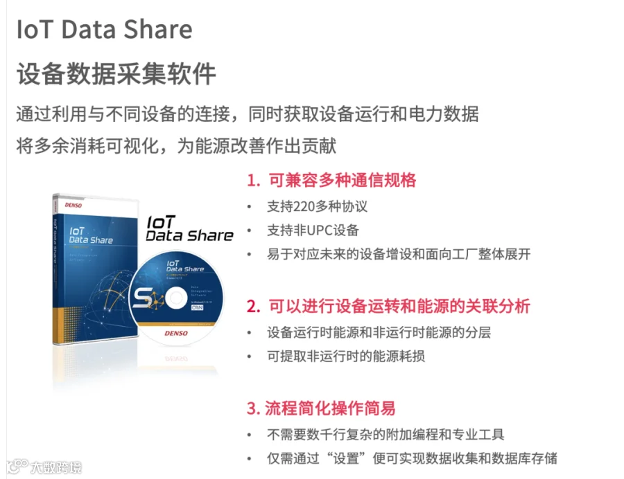 一般而言,工厂引进的设备通常是和专用软件进行配套使用的,而电装的软件则可以和现有的其他公司产品兼容,降低引进门槛,还可以和多种通用的数据分析应用程序协同工作,赋能工厂的数字化作业,为节能做出贡献。