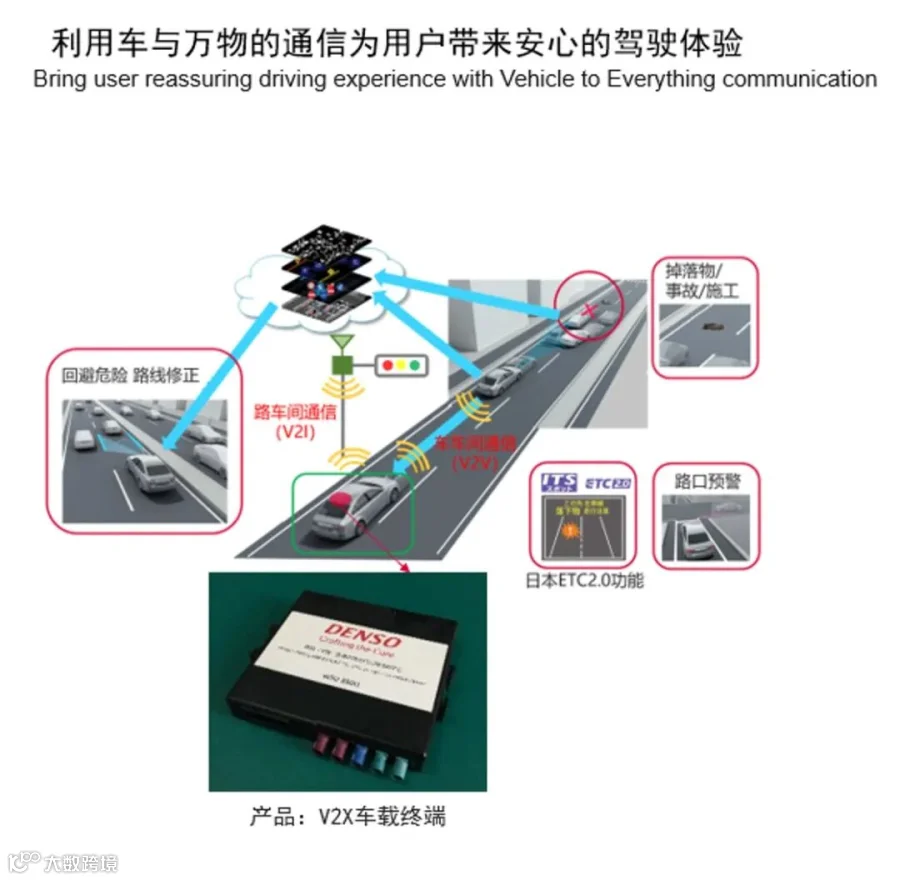 基于电装全球的研发基础,由电装中国软硬件专家组成团队,专注于中国特有的C-V2X进行本地化开发。同时与各相关行政单位、系统相关设施、关键零部件等商业伙伴保持良好关系,开发基于各种硬件平台的V2X-ECU产品,测试、装车后与客户一起参与行业内示范项目演示及商业化技术验证活动。