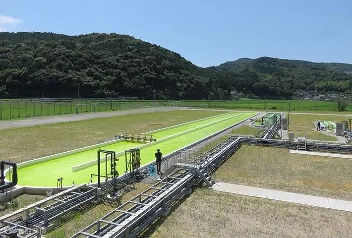 ↑ 电装在日本熊本县天草市建设用于微绿球藻培养实验的天草事业所。在所内的大型培养池中进行 Coccomyxa KJ藻类的大规模培养实验,来验证可持续能源的可行性。