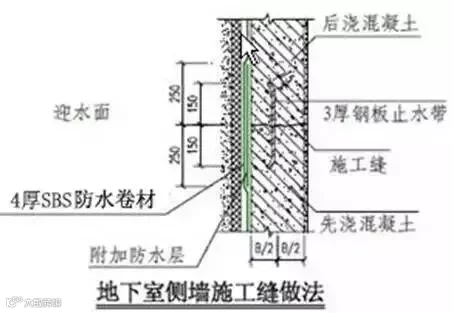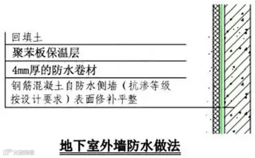 浇筑混凝土—对拉螺杆处理—缺陷修补—防水附加层—防水层—聚苯板保温层—室外回填土