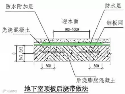 2、预留地梁砼法——适用于框架结构,板钢筋后期绑扎,砼与地梁上部砼二次浇注。