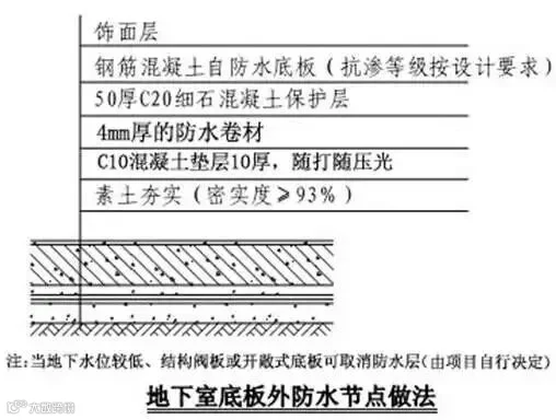 素土夯实—垫层—防水附加层—防水层—防水保护层—底板—饰面层